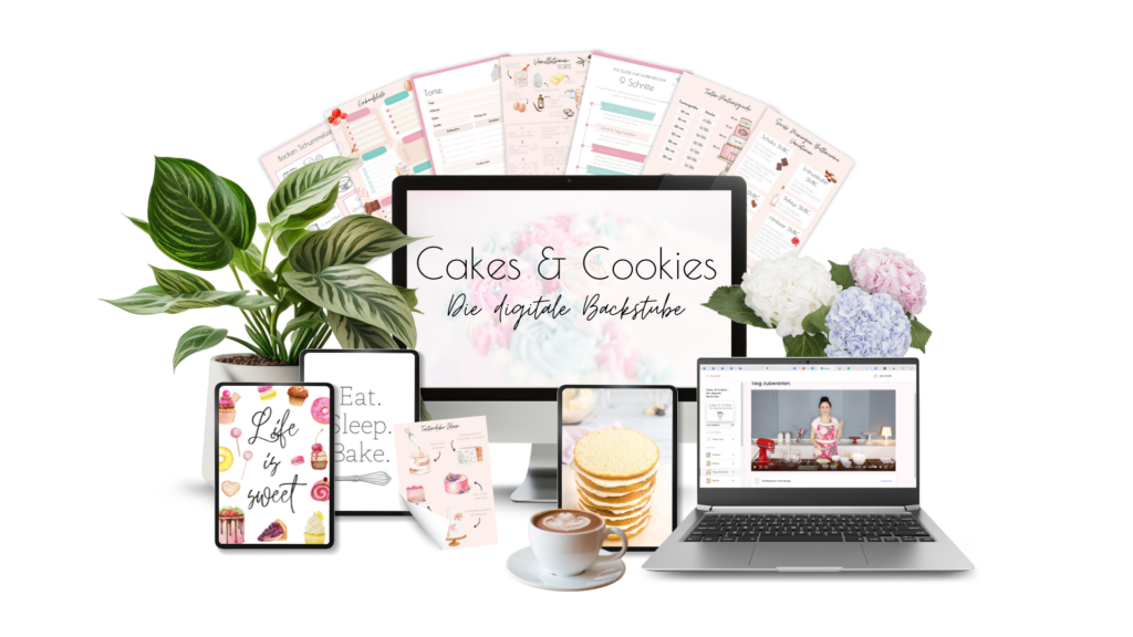 Falls dir eine 3D-Torte eine Nummer zu groß ist, du aber trotzdem gerne eine super leckere und wunderschöne Geburtstagstorte machen möchtest, solltest du zu „Cakes & Cookies – Die digitale Backstube“ kommen! Dort zeige ich dir Schritt-für-Schritt, wie du tolle Torten & Co machen kannst!